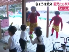 New 熱海富士が地元神社の節分祭に参加 特製の土俵で小学生と”勝負”も