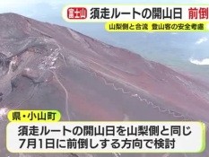New 富士山・須走ルートのみ開山の前倒す方向で調整 8合目で山梨側の登山道と合流 下山時に道を間違える人が多発 開山日を統一へ
