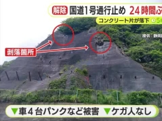New 国道1号が一部通行止め 土砂崩れが発生 落石で車パンクも 興津IC付近~寺尾IC付近