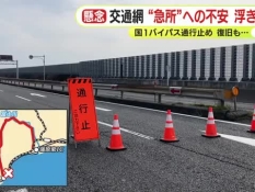 New 国道一号バイパスでコンクリート片落下…一部区間の通行止め続く 静岡国道事務所が応急対策進める