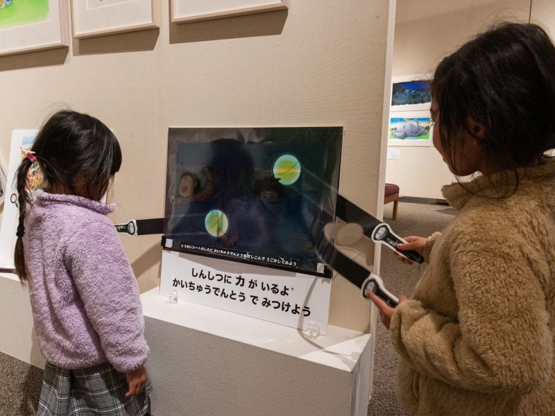 「大ピンチずかん」の世界を楽しめる体験スペースもあり、子供たちが夢中になって遊んでいます。
