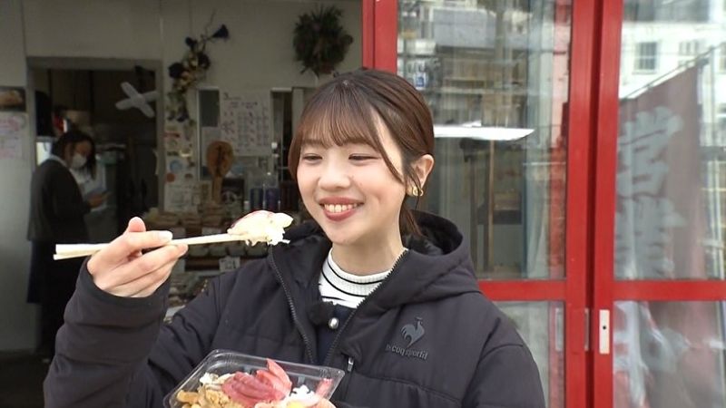 海鮮をほおばる大森アナ