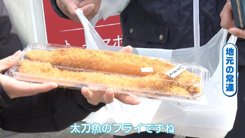 大きなレジ袋を抱えた男性客。その中身を見せてもらうと、大ぶりのタチウオのフライが2つも入っていました。