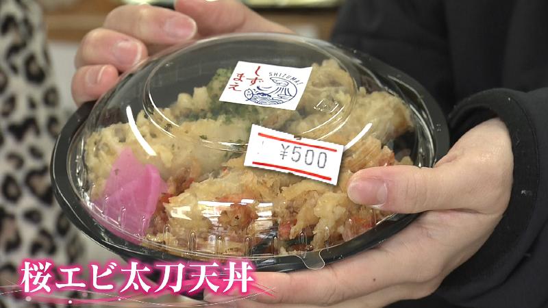 人気食材の共演「桜エビ太刀天丼」は500円と驚きのお値段。