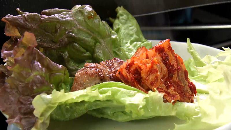 3.5mmの極厚豚肉を、キムチやナムル、野菜と一緒に味わう韓国のソウルフードです。