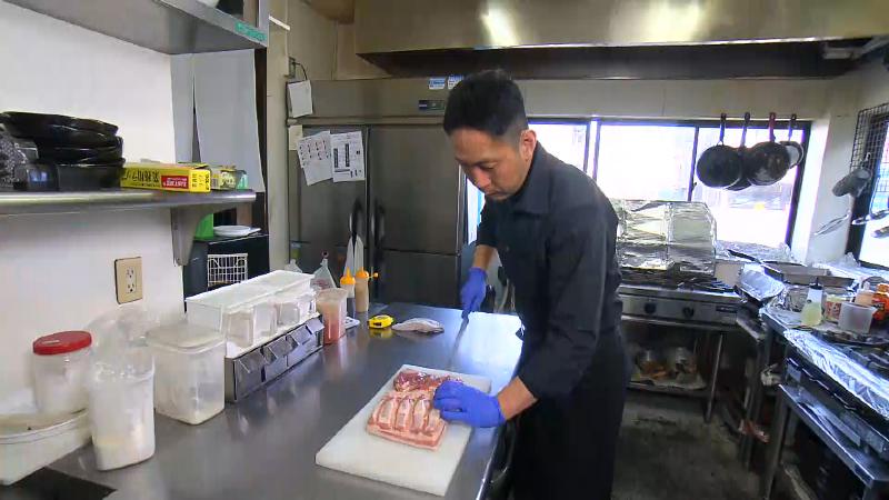 オリーブ豚というお肉を使ってるんですけども、餌の中にオリーブを混ぜて育てているので、他の豚に比べると甘みが全然違ってきます