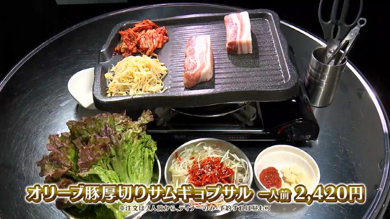 自慢の一品は、「オリーブ豚 厚切りサムギョプサル(1人前2420円)」。