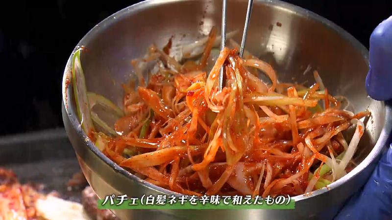 キムチの代わりに、パチェという白髪ネギを自家製の辛味であえたものを乗せてもおいしい!