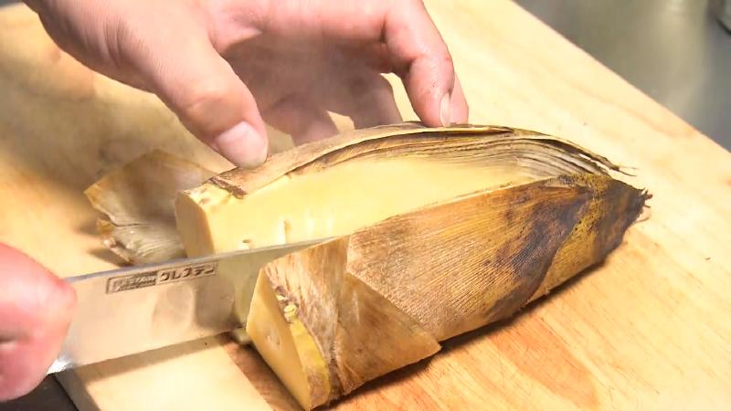 一般的にタケノコのあく抜きは、ぬかなどでボイルしますが、タケノコをまるごとホイルで包んでオーブン蒸し焼きにする独自の調理法を採用。