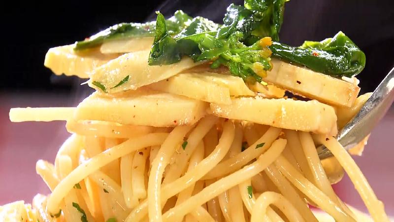 春の味覚満載!「たけのこと菜の花のペペロンチーノ」