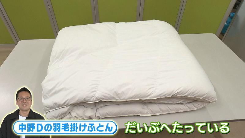 40代男性の羽毛布団で、へたっている感じが見てわかります