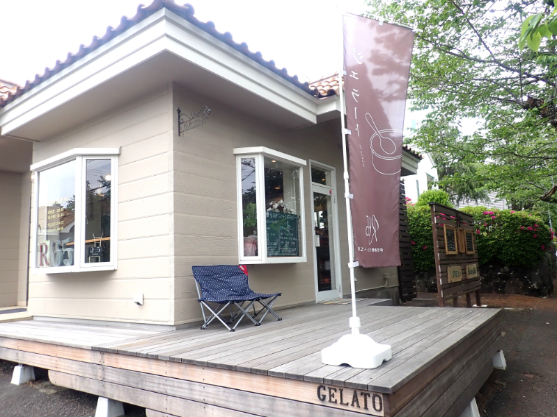 店の外にあるウッドデッキに腰掛けてジェラートを食べてみてはいかがでしょうか。