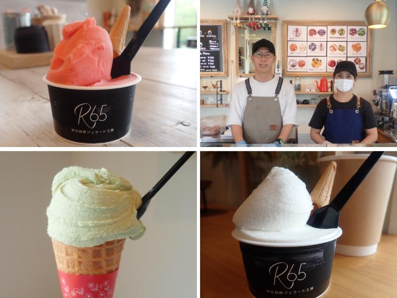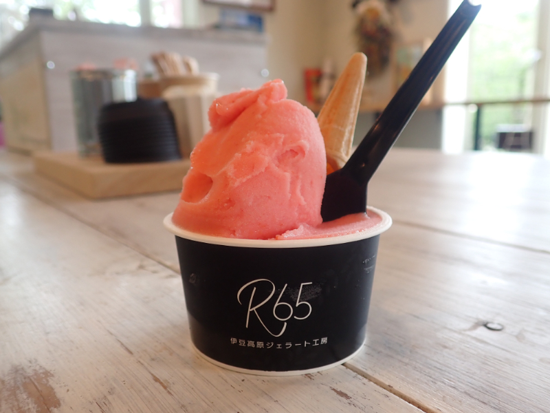 「伊豆高原ジェラート工房R65(アールロクゴー)」では、静岡県内で生産された、こだわり食材のジェラートが食べられます。