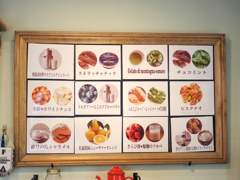 店内には12種類のフレーバーのジェラートが並んでいます。