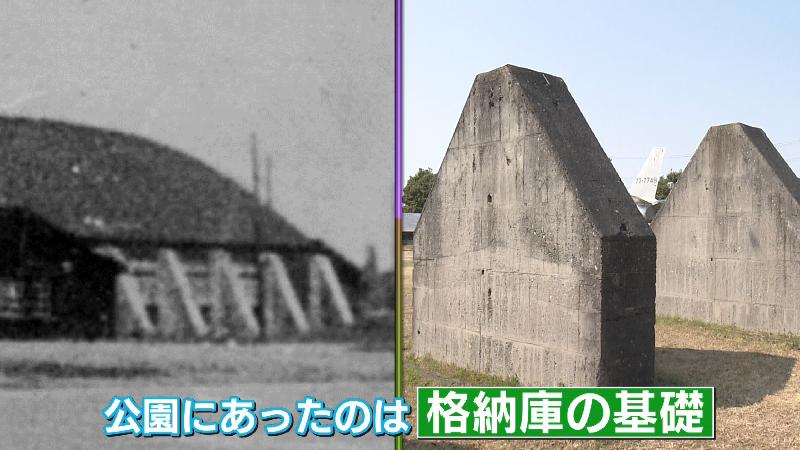 今から80年ぐらい前、終戦頃の写真です。戦闘機の格納庫があって、公園にあったのはその基礎です