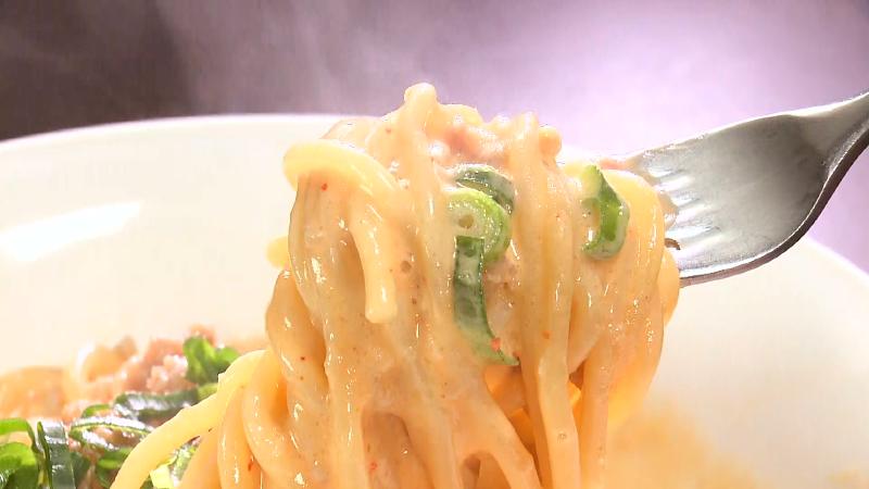 太めの麺は、まるでうどんとパスタの中間のような食感で、濃厚なソースとの相性も抜群! 新感覚のパスタです。