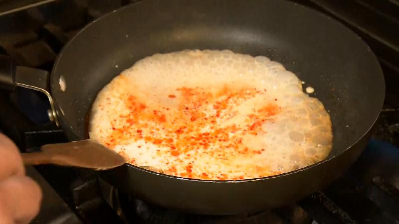 ニンニク、ショウガ、豆板醤といった中華の調味料に加え、生クリームで洋風な味わいを出しています。