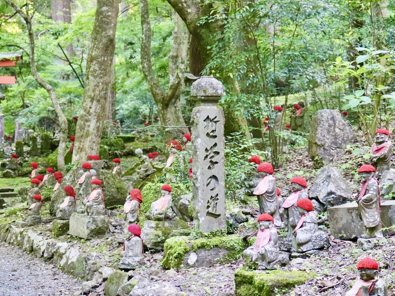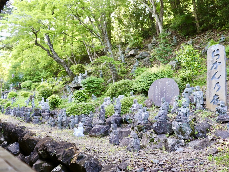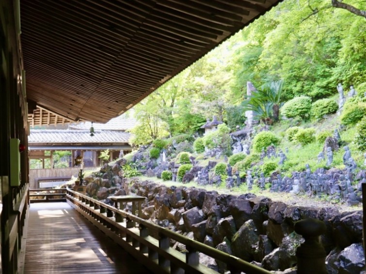 本堂の裏側の斜面は「らかん乃庭」で、羅漢たちが本堂を守るように並んでいます。