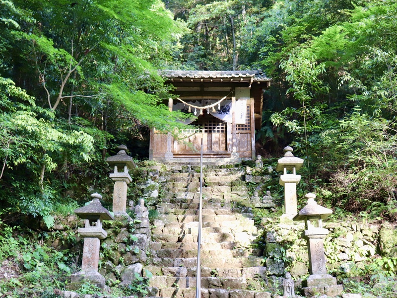 鳥居をくぐりしばらく進むと左手に橋と急勾配の階段が見えます。
