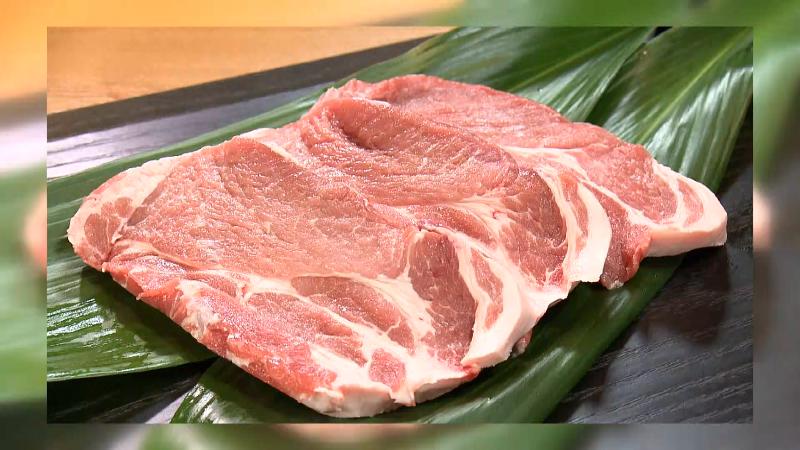 「ふじのくにいきいきポーク」は、非常に繊維が細かくて保水性があるので、しっとりなめらかなんです。肩ロースの部分を使っていて、筋肉の中に脂肪の層が少し入っているため、赤身と脂身のバランスが絶妙にいいんです