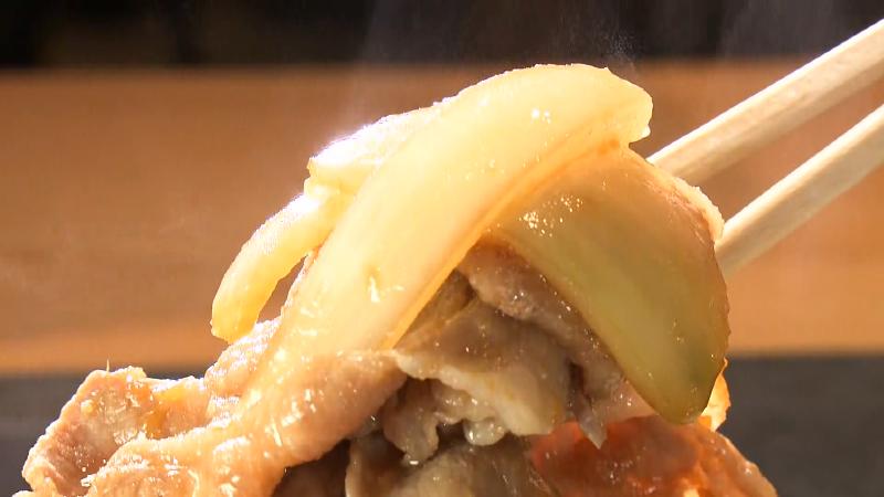 しょうが焼きの特製ダレは、ショウガ、ニンニク、ハチミツ、リンゴ、タマネギを使用し甘辛く仕上げています。