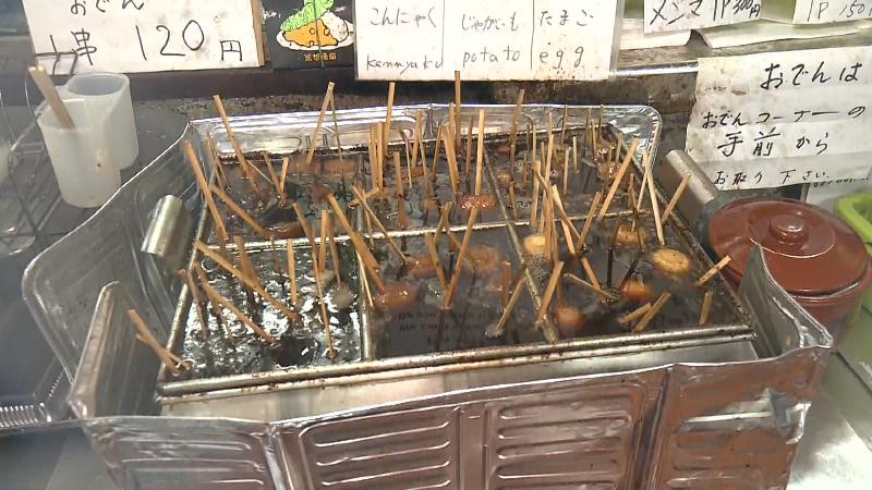 店内に入ると、たい焼き店とは思えない光景が。カウンターには黒いスープの静岡おでんが並び、メンマまで販売されています。