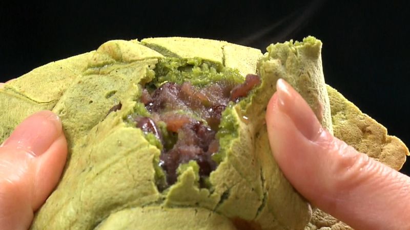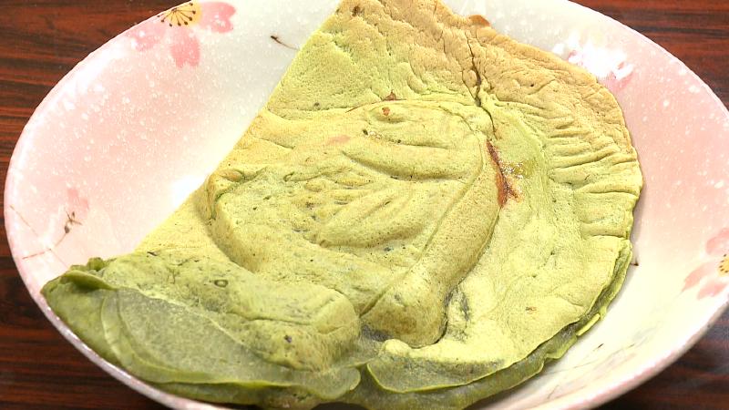お茶は川根茶を使っています。抹茶で色づけして、味は川根茶を一緒に生地に練り込んで出します。そうすると香りがすごくいいのです