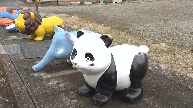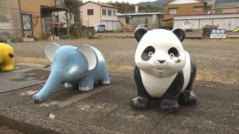 公園でも動物園でもない場所に、パンダやゾウなどの動物がずらりと並んでいます。