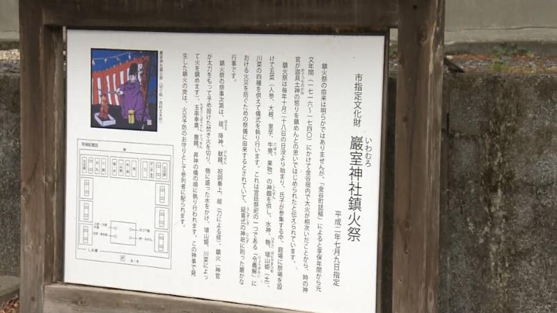 入口には巌室神社で行われる鎮火祭が市指定文化財である説明看板があります。