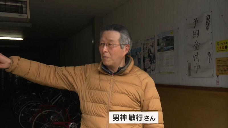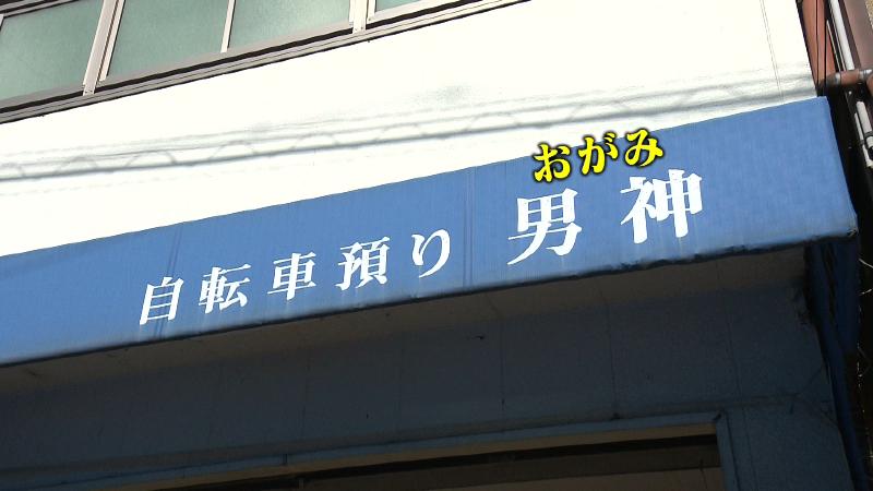 さらに歩いていくと、隣の建物にも「男神」と書かれています。「自転車預かり」のお店だったので、気になって声をかけると、男性が出てきてくれました。