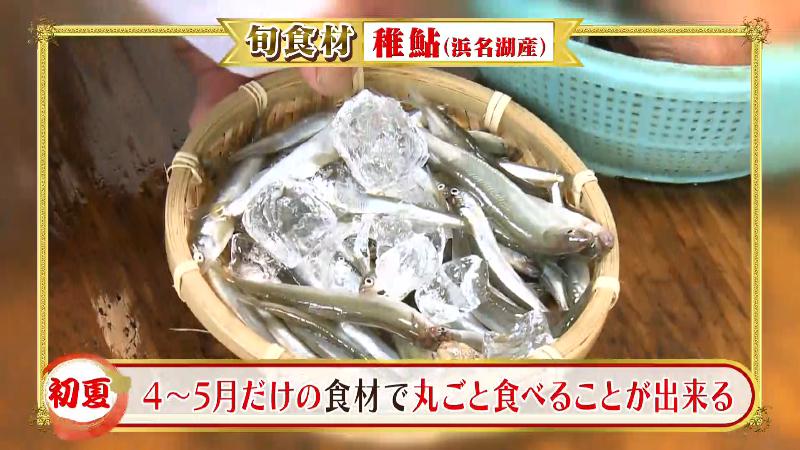 稚アユは浜名湖でとれる、4~5月が旬の食材で、大人になる前の小さなアユです。