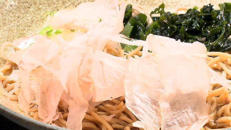 オススメの食べ方は、焼サバとそばを楽しんだ後に、焼津産のカツオ節をふりかけて「追いカツオ」で味変すること。