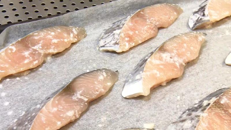 こうして、じっくりうま味を増したサワラをオーブンで焼き上げます。