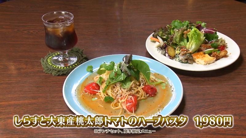自慢のメニューは、「しらすと大東産桃太郎トマトのハーブパスタ(1980円)」。
