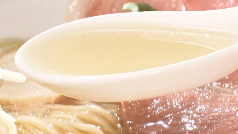 スープは、丸鶏・鶏ガラ・モミジ・背ガラなどを4時間半かけてゆっくり仕上げています。かえしには岩塩をメインに3種類の塩を使っていて、さらに昆布や貝だしを追加しています