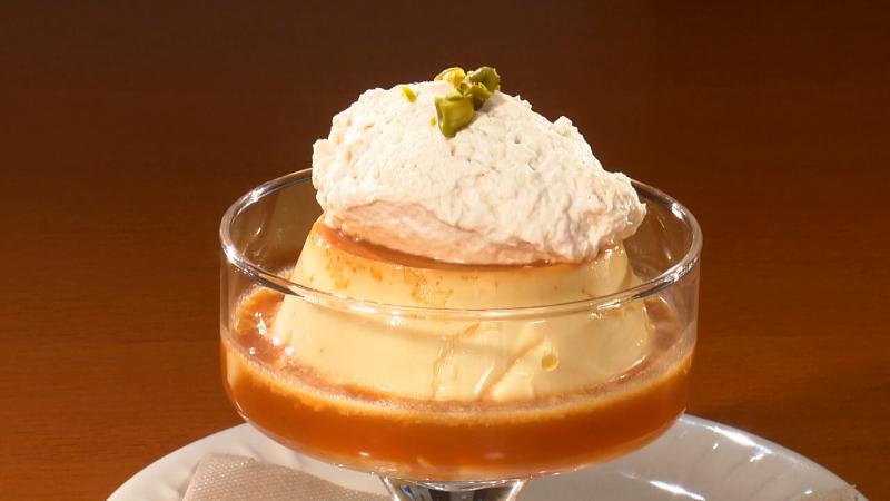 プリンの上に乗った生クリームにはエスプレッソが効いており、大人の味わいです。