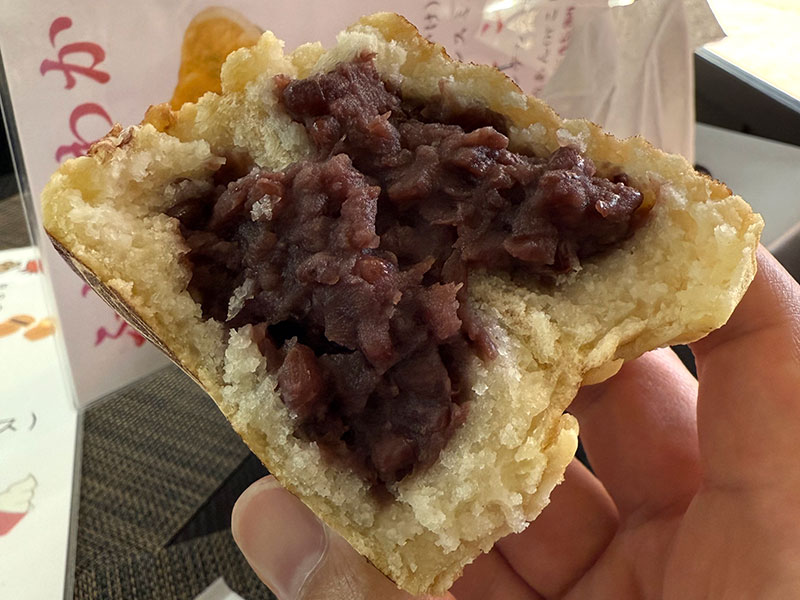 店オリジナルの「あおい饅頭」は、いわゆる今川焼き・大判焼きのような、生地の中にあんこやクリームを入れたお菓子です。