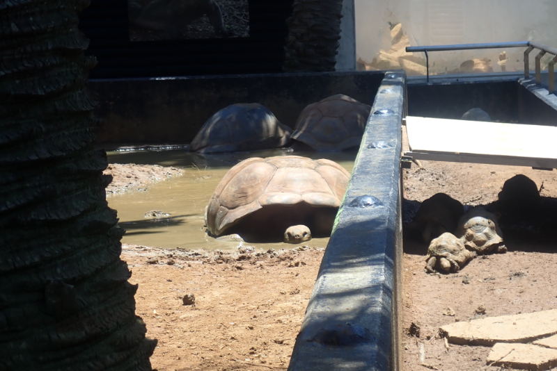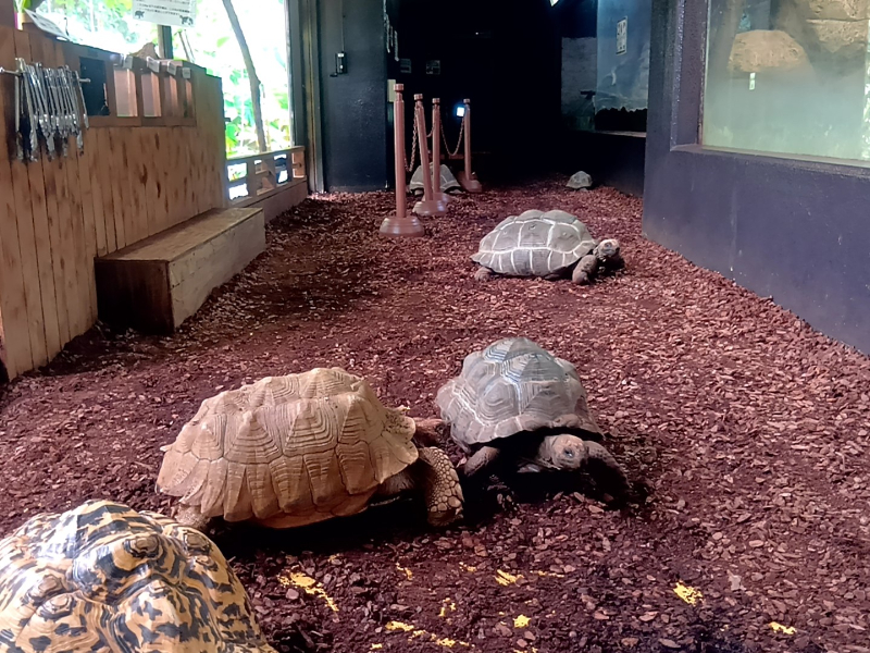 屋外にはゾウガメ牧場があり、大きな甲羅を持ったゾウガメたちが自由に過ごしています。