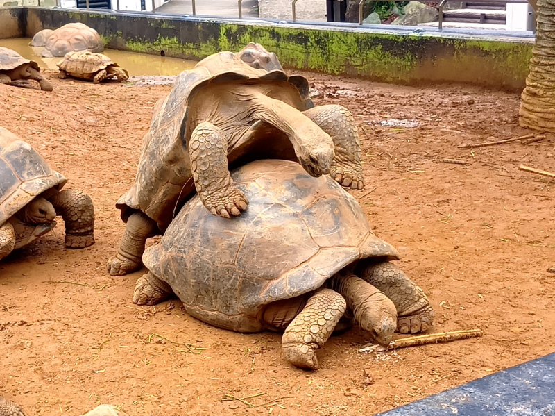 偶然にも、アルダブラゾウガメの求愛行動が見られました。