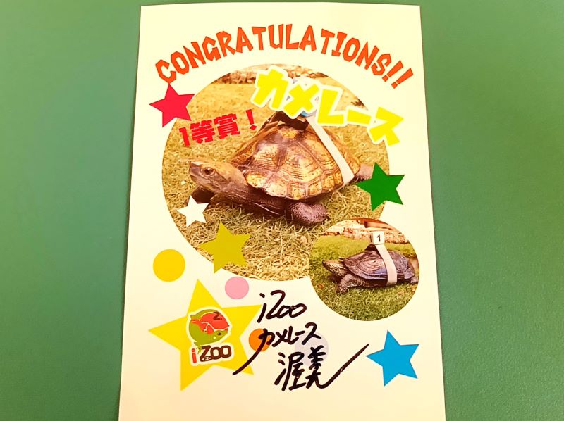 予想が当たった人には、iZooのオリジナルポストカードがもらえます。最高のお土産ですね。