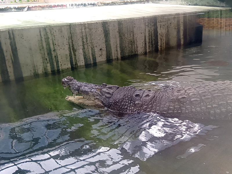 イリエワニは、は虫類のなかでも最大を誇り、遠くからでもその迫力や威厳が伝わってきました。iZooのイリエワニは、全長5m以上もあるそうです。