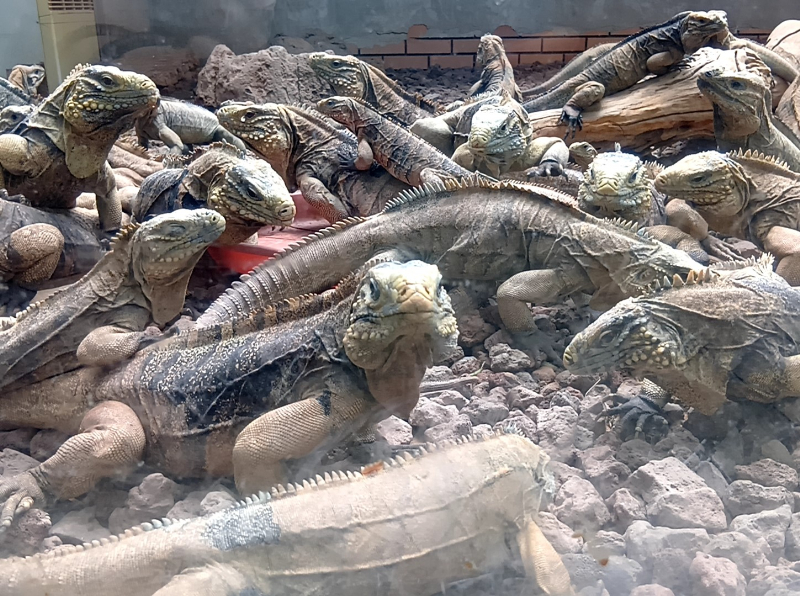 正面の入り口から入ってすぐ驚くのは、いきなりキューバイワイグアナ(オオイワイグアナ)の大群がお出迎えしてくれること。