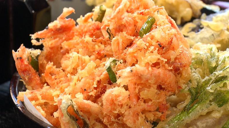 人気の秘密はサクラエビをふんだんに使ったかき揚げです。