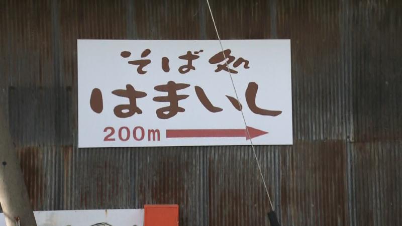 途中、新幹線の線路の下をくぐり抜け、さらに歩いていると、ようやく「そば処 はまいし 200m」の看板を発見。