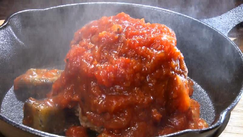 ナスと新玉ねぎのトマト煮込み