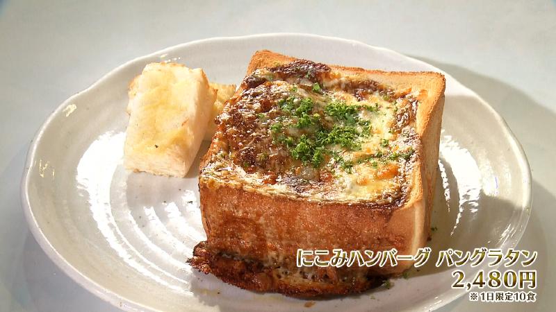 「にこみハンバーグ パングラタン・ライス付き(2480円)」は、食パンに煮込みハンバーグが入った、見た目のインパクトもあるボリューミーな逸品。