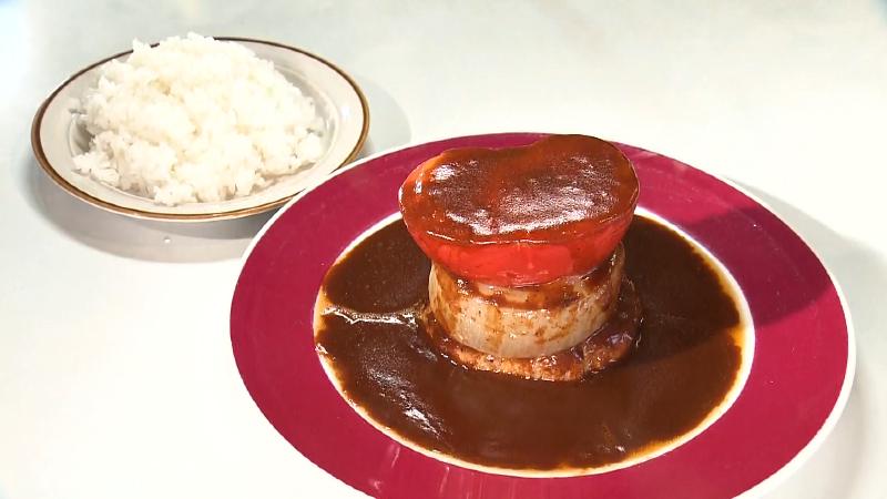 浜松市中央区の「みさくぼ」は地元に愛される洋食店で、食パンにグラタンが入ったパングラタンなど、魅力的なメニューがある人気店です。自慢のメニューは見た目もインパクト大の“縦積み”されたハンバーグでした。