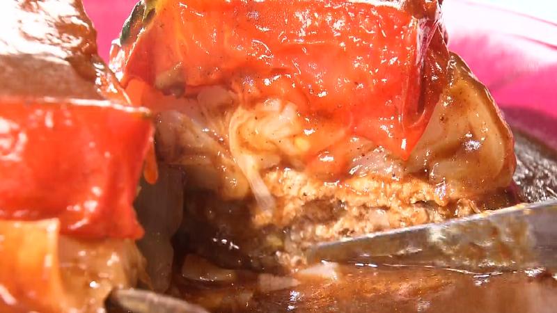 トマトと新タマネギが“縦積み”ハンバーグ