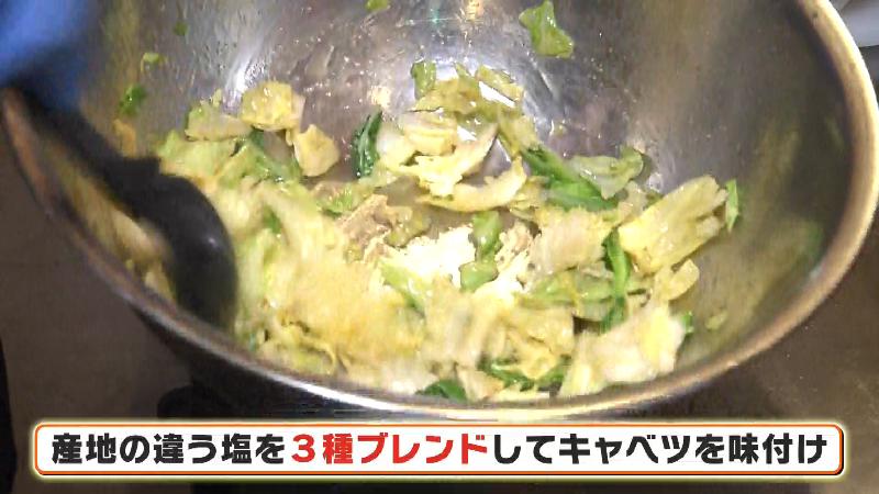 キャベツは、産地の違う塩を3種ブレンドして味付けしています。