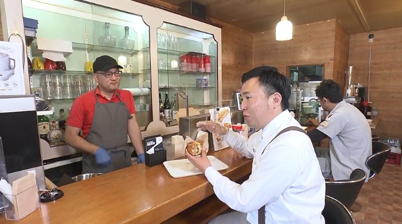 店主の角尾敦志さんが言います、「手袋を使って食べてください。必ず使ってください」と。